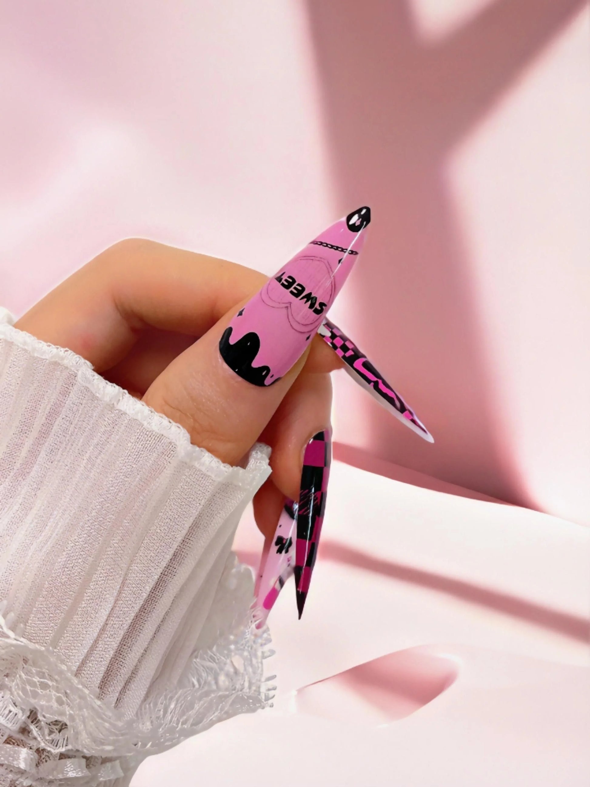 🔥 Y2K Sweet Punk Nails - Cyber-punk meets kawaii cuteness! Futuristic stiletto designs blend edgy rebellion with girly charm, perfect for Y2K fashion rebels who want that digital-age attitude! ✨💜