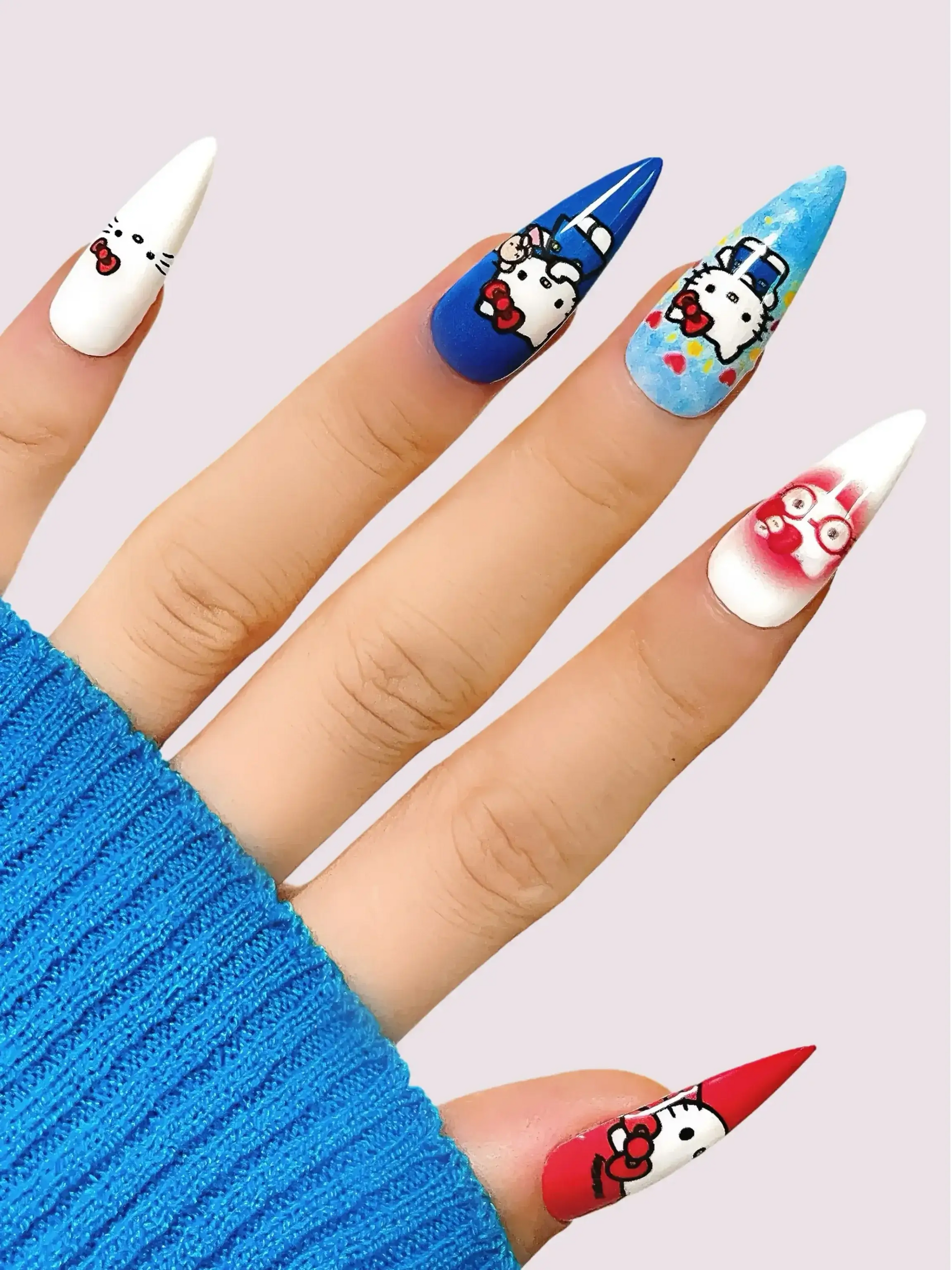 Cute Hello Kitty nail art with iconic characters, perfect for kawaii lovers pursuing adorable trendy looks.