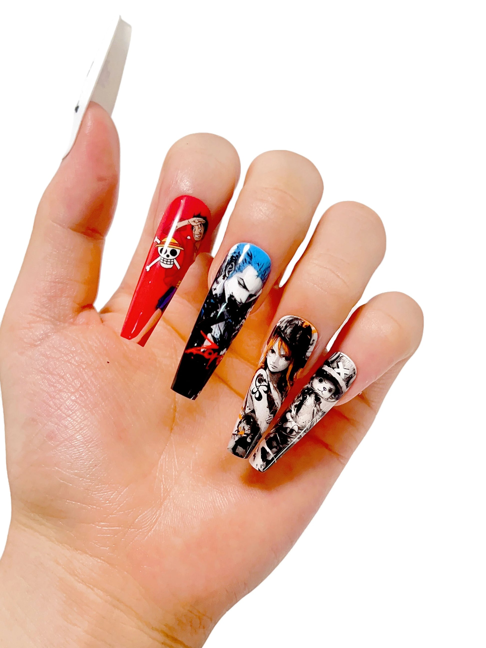 One Piece Adventure Nails - Transform your fingertips into epic anime art! Perfect for fans who want to showcase their passion with style! 🏴☠️✨